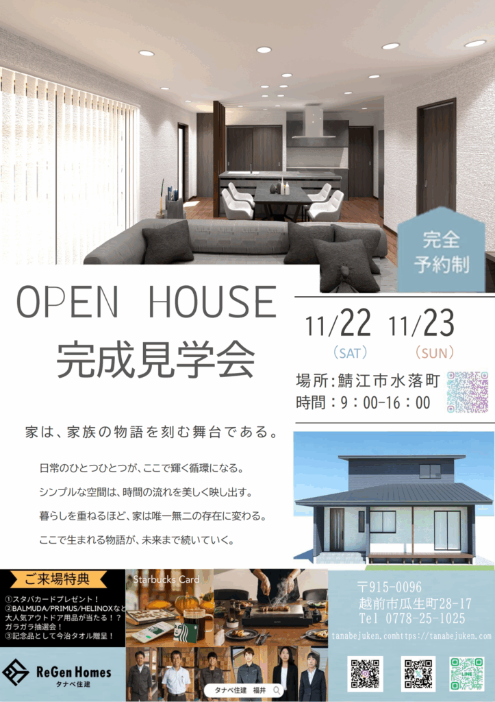 11月22日(土)・23日(日)の2日間鯖江市水落町で内覧会を開催させていただきます!
