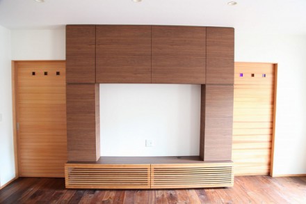 この家に合ったTVボードを作り、収納スペースを多くしたことでTV周りもすっきりと見せることができます。