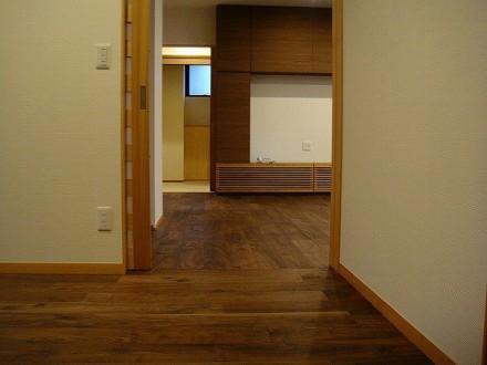 玄関ホールからリビングへとつづく動線はすべてフラットにし、段差をなくしました。