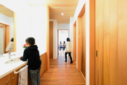 LDKから出て直線上には洗面所、脱衣所、UB、トイレがあり、奥様はもちろん家族が使い易い動線となっています。
